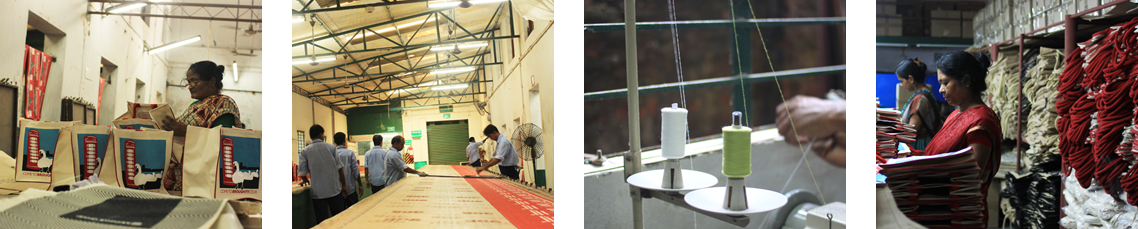 Located on the outskirts of Calcutta, the Aarbur factory is an interesting contrast of modernity in its quiet, semi-urban environs. Spread over an area of 9600 square yards, the factory is equipped with state-of-the-art lamination, cutting, printing and stitching machines, a veritable 'one-stop-shop' for the manufacture of jute bags.